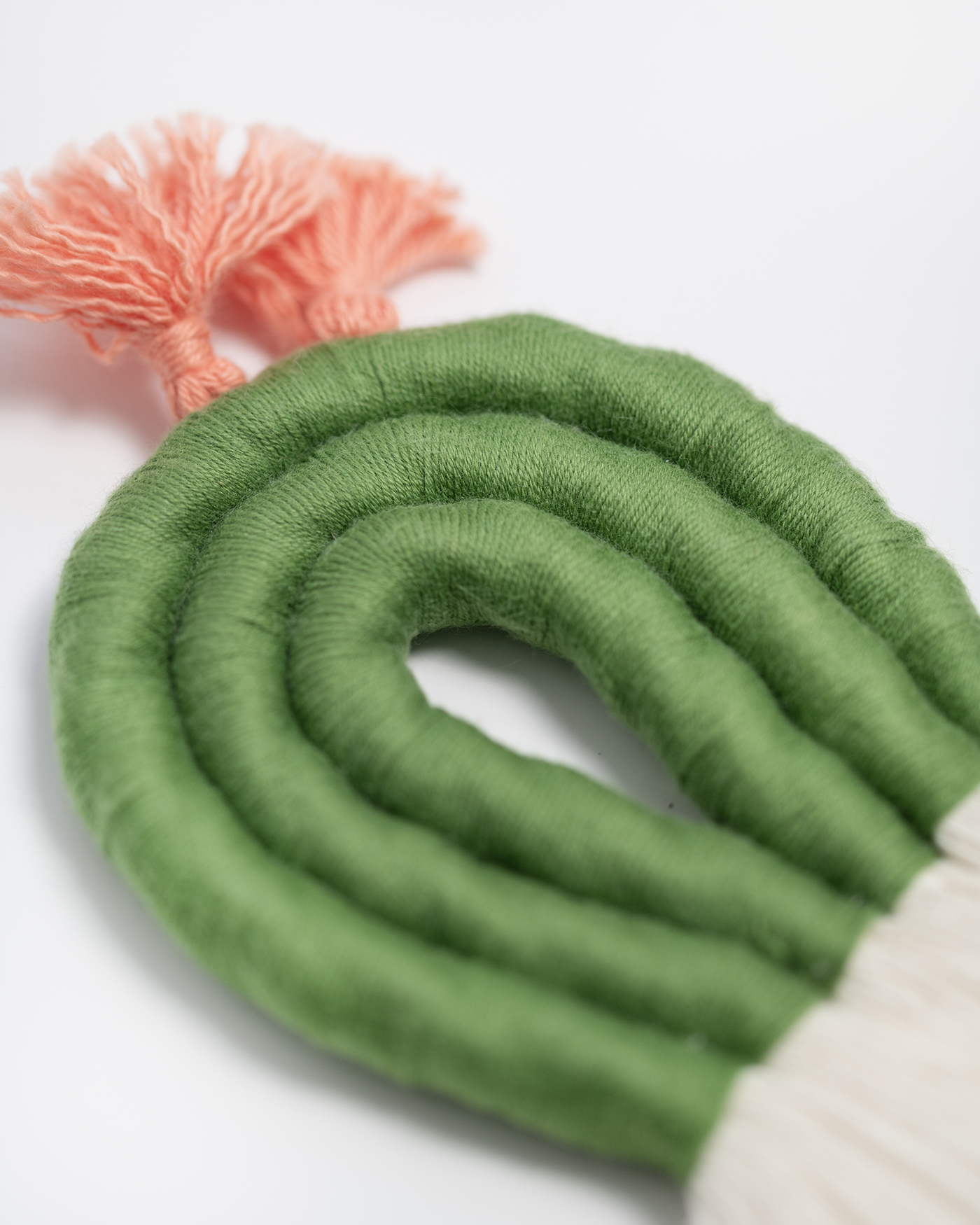 Hilo y cuerda de algodón 100% de 6 mm y 12 mm de grosor. Bolas decorativas de madera. Algunas piezas llevan una anilla de metal para una buena sujeción a la pared. Interior de las letras con alambre para dar la forma y que tengan mayor resistencia.